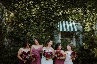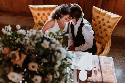 Other couples choose to get ready together. This enables you to spend the entirety of your wedding day together. Some of the sweetest photo opportunities include sharing a mirror as you fix your hair, zipping your partner up into their wedding dress, tying a bow tie, or lacing up boots for each other. There is no wrong way to do this, it’s all up to you and how you envision your day panning out!